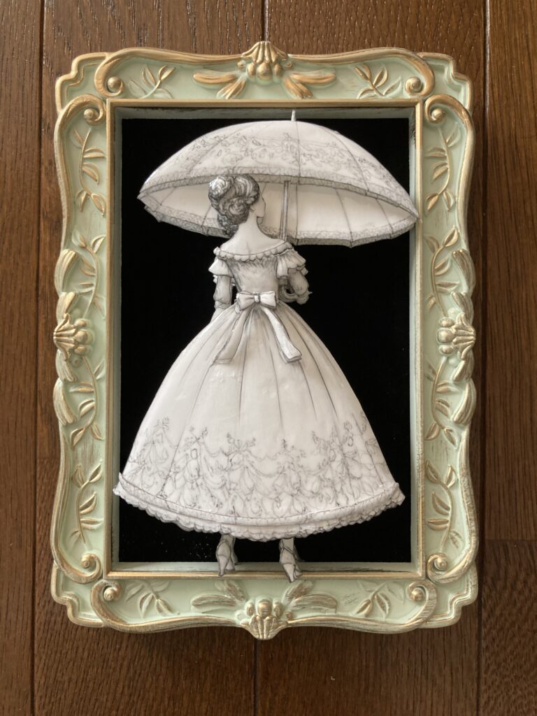 「傘の貴婦人」のシャドーボックス作品