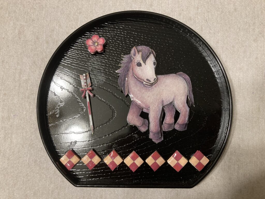 「干支の午」のシャドーボックス作品 Chiyo Ohno画の「干支の午」のシャドーボックス作品です。今年も残り2ヶ月となりました。来年は午年です。黒い塗りのお盆に乗せました。プリントは、シャドーボックス・ラ・マーニHPのプリント販売をご覧下さい。 投稿ナビゲーション 前の記事「吊るし雛」のシャドーボックス作品 2025年10月27日 s_youriko 未分類 コメントを残す