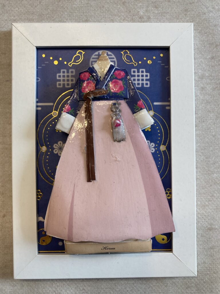 「韓国」のシャドーボックス作品 まど Chiyo Ohno画の簡単プリント「民族衣装 韓国」です。厚木教室のNMさんの作品です。土台の紙と衣装の紺色がマッチしていて素敵です。ホワイトの写真額もピッタリですね。 投稿ナビゲーション 前の記事「アントンペック」のシャドーボックス作品ボックス 2025年12月7日 s_youriko 未分類 コメントを残す