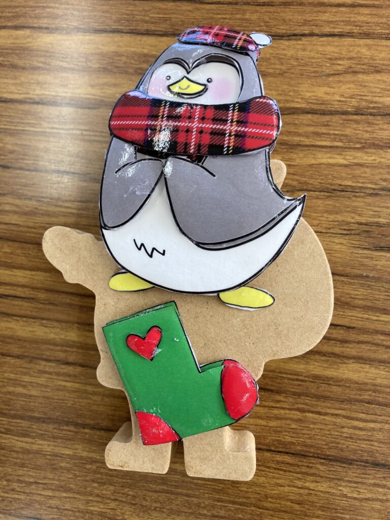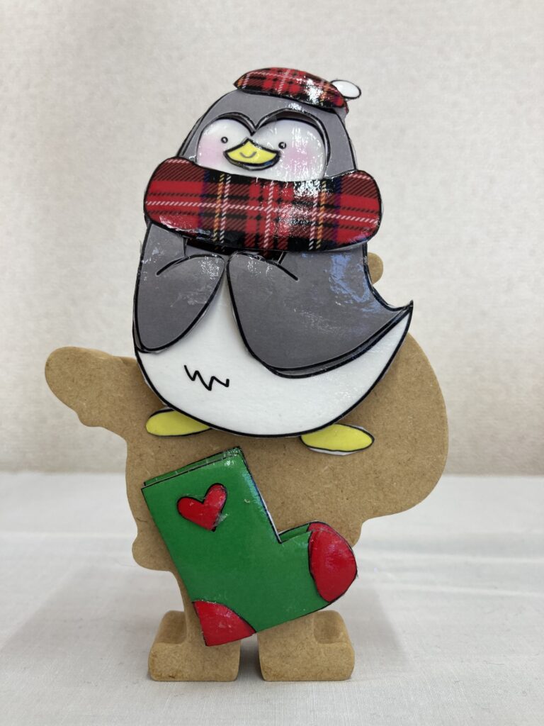 福谷真美画「クリスマスオーナメント その2」のシャドーボックス作品 です。福谷真美画の「ペンギン」のシャドーボックス作品と合体させました。サンタの形のプラークに乗せました。アイデアが素晴らしいですね。可愛い❤️プリントは、シャドーボックス・ラ・マーニHPのプリント販売をご覧下さい。