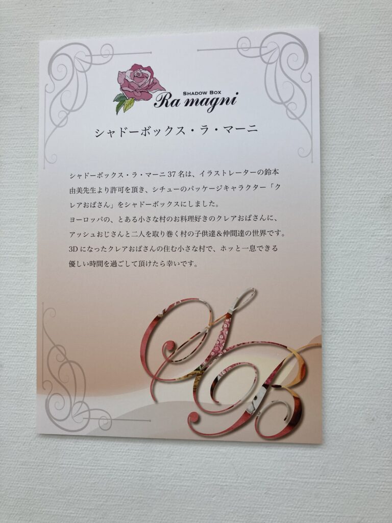 シャドーボックス展 その38 シャドーボックス展の作品紹介は昨日で終わりました。本日は、グループキャプションと会場の様子とご紹介させて頂きます。 投稿ナビゲーション 前の記事シャドーボックス展 その37 2026年3月2日 s_youriko 未分類 コメントを残す