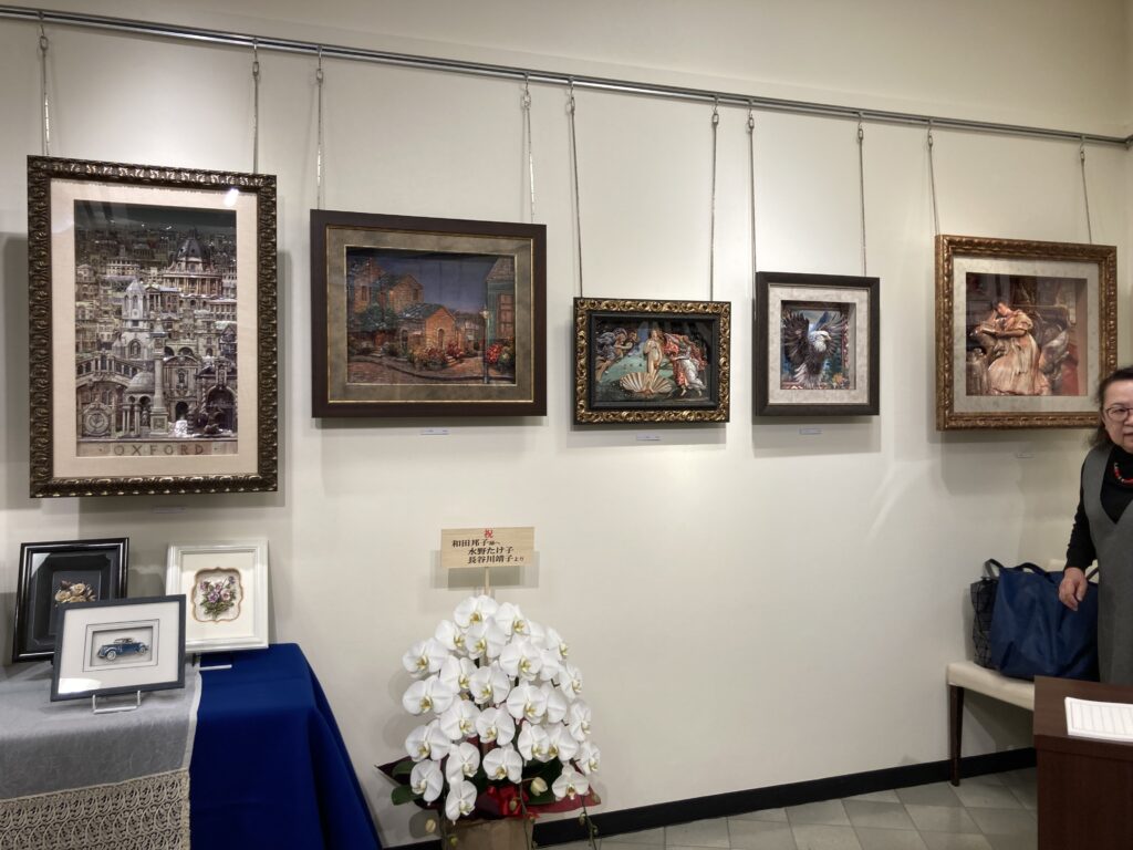 「和田邦子作品展」 昨日、有楽町駅前の東京交通会館B1Fで開催されています「和田邦子作品展」に行って来ました。丁寧に作られた作品の数々に絵柄に合わせた額との調和が素晴らしく感動して帰って来ました。土曜日まで開催されています。 投稿ナビゲーション 前の記事「ハット」のシャドーボックス作品 2026年3月11日 s_youriko 未分類 コメントを残す